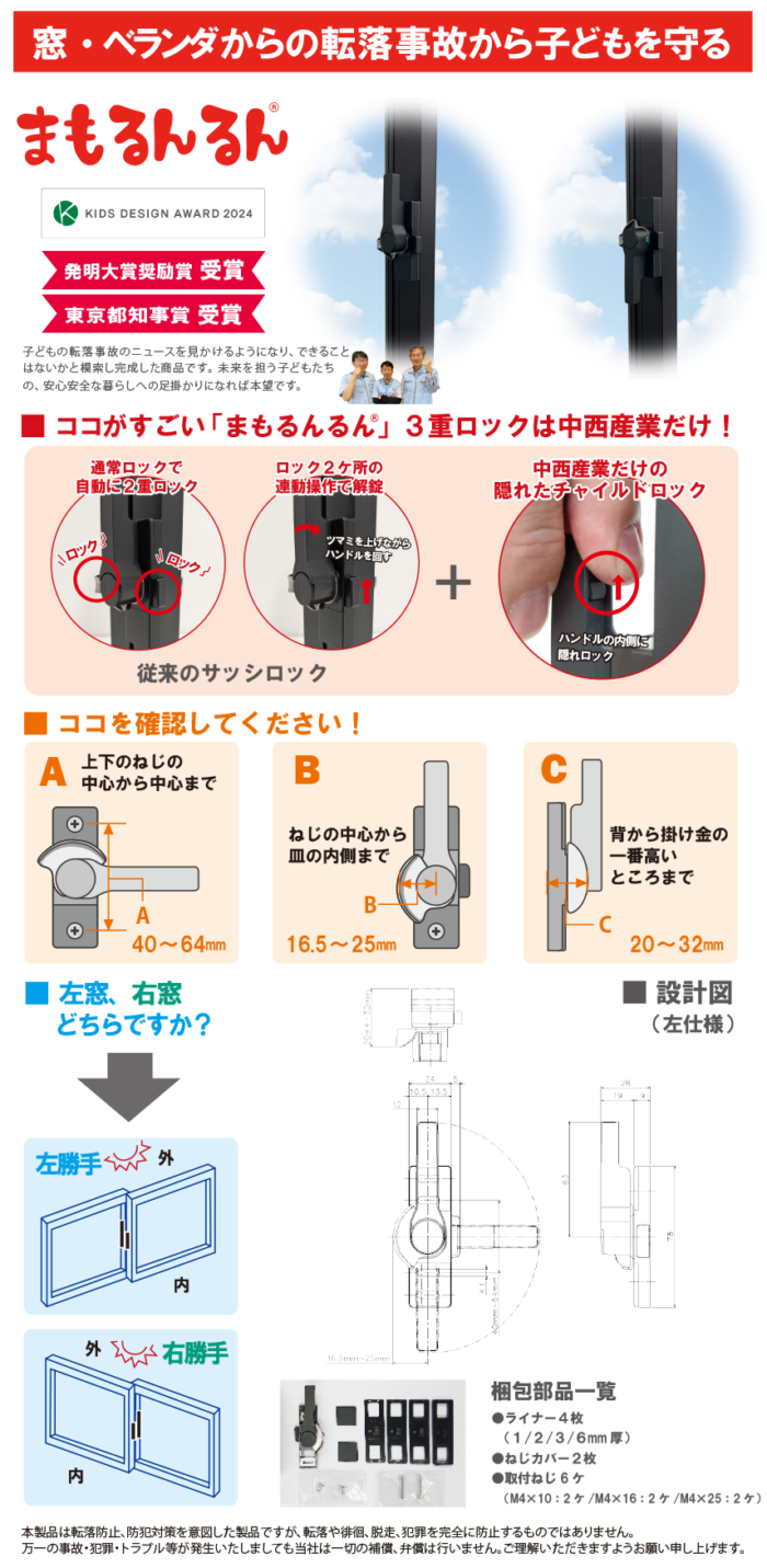 | 戸建て、マンションいずれのサッシ窓にも取り付けることができますか | 上記掲載の「ココを確認してください!」をご覧ください 明記しています「A」「B」「C」3箇所すべてが数値内でしたらお取り付けいただくことができます |
