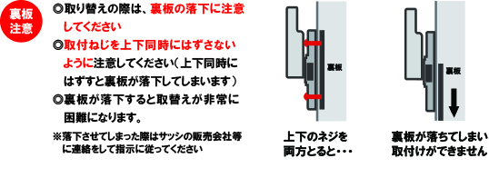 裏板自体もそのビスで固定されており、サッシ内部に接着されているわけではありません。